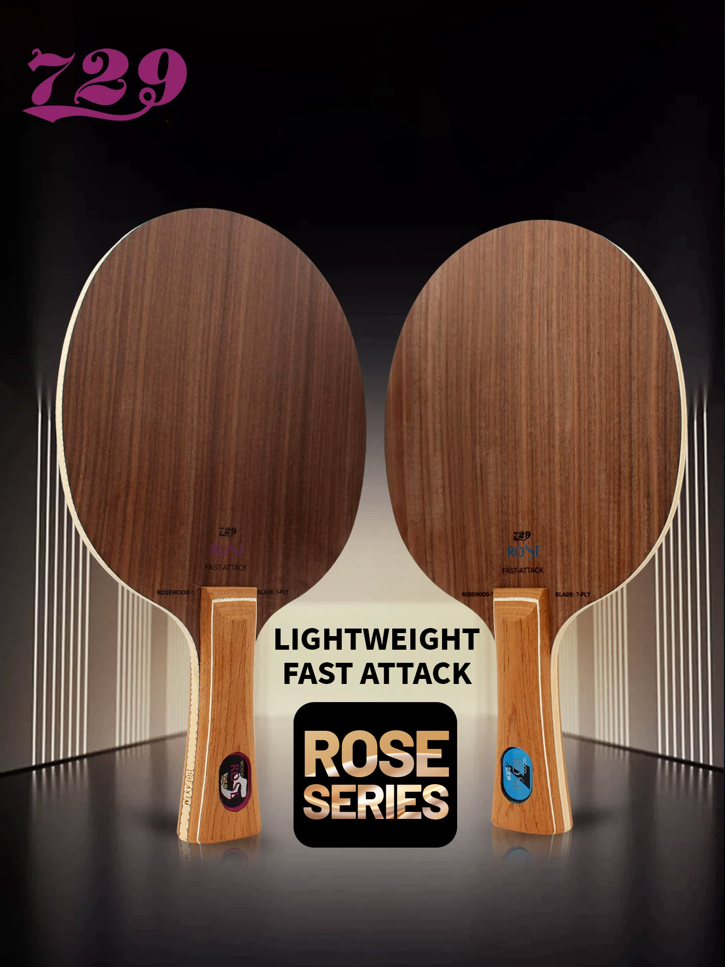 En términos de rendimiento, el 729 Rose 7 ofrece una clasificación de velocidad de 8,5 sobre 10, ofreciendo una potencia explosiva de rango medio adecuada para smashes y contraataques. Su calificación de control es de 8 sobre 10, lo que proporciona una plataforma estable para un juego agresivo manteniendo la precisión. La calificación de efecto de 8,2 sobre 10 garantiza un agarre profundo de la pelota, lo que permite a los jugadores crear arcos de efecto liftados intensos con facilidad. Además, la hoja tiene una fuerte retención de energía, lo que permite ataques sostenidos sin perder potencia ni control.